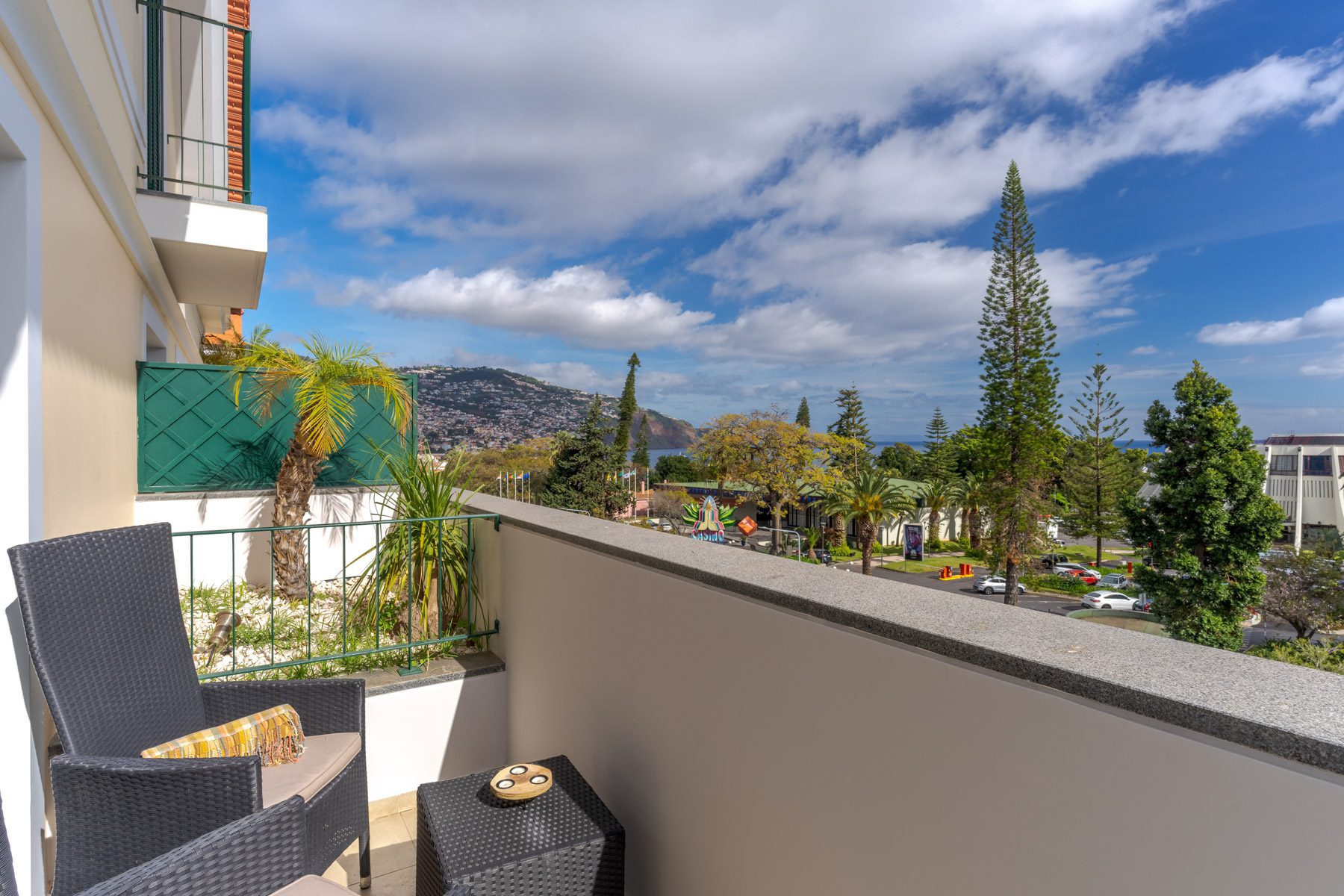 Located in the heart of the charming city of Funchal, on the island of Madeira, this vacation rental offers an exceptional experience for those seeking a holiday on the island. The building, situated within a private condominium, features an elegant luxury duplex apartment, standing out for its prime location opposite the Madeira Casino. Upon entering, guests are greeted by a spacious and modern environment, complemented by the comfort of air conditioning, essential for making the most of the region’s tropical climate.