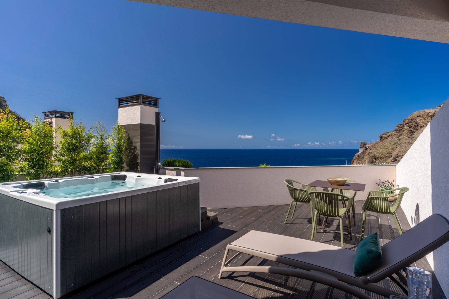 Enjoy the indulgence of a jacuzzi on the terrace, where you can relax with panoramic views in the background. A unique feature awaits you – an outdoor shower on the terrace for a refreshing outdoor experience.